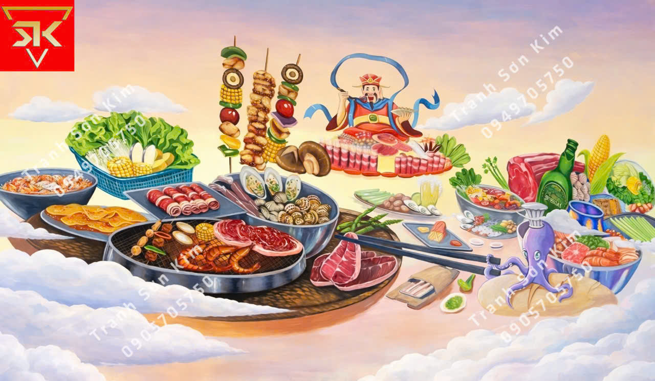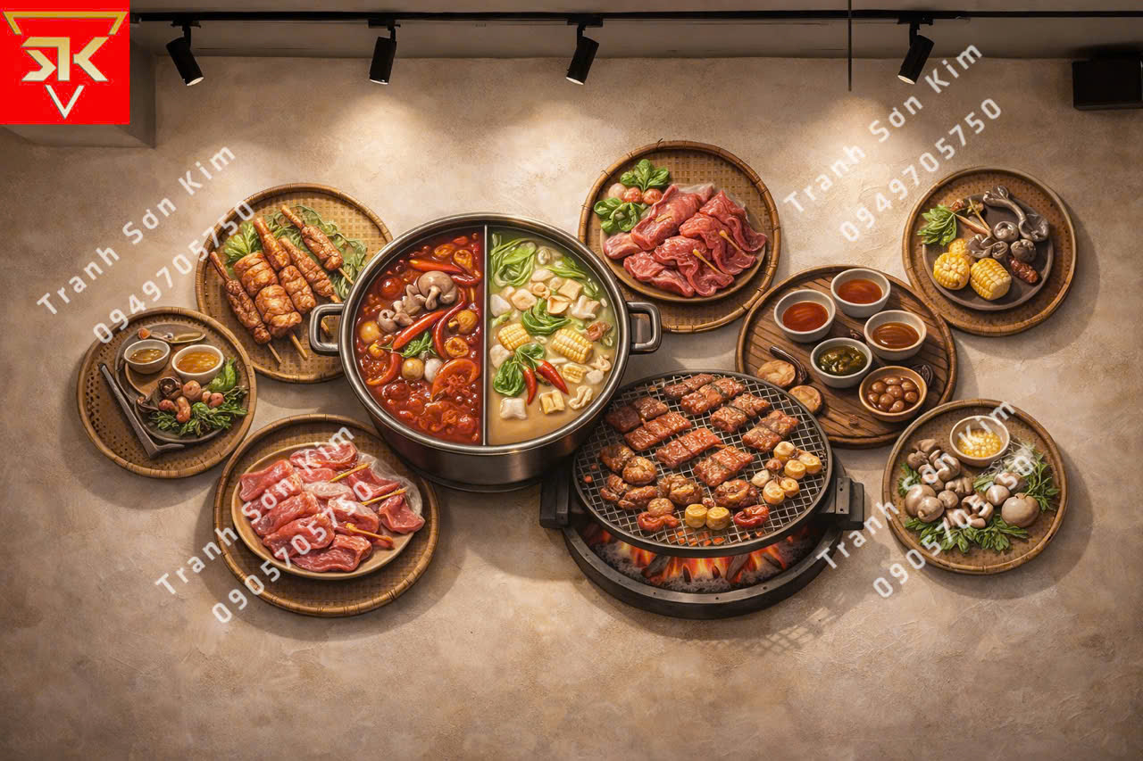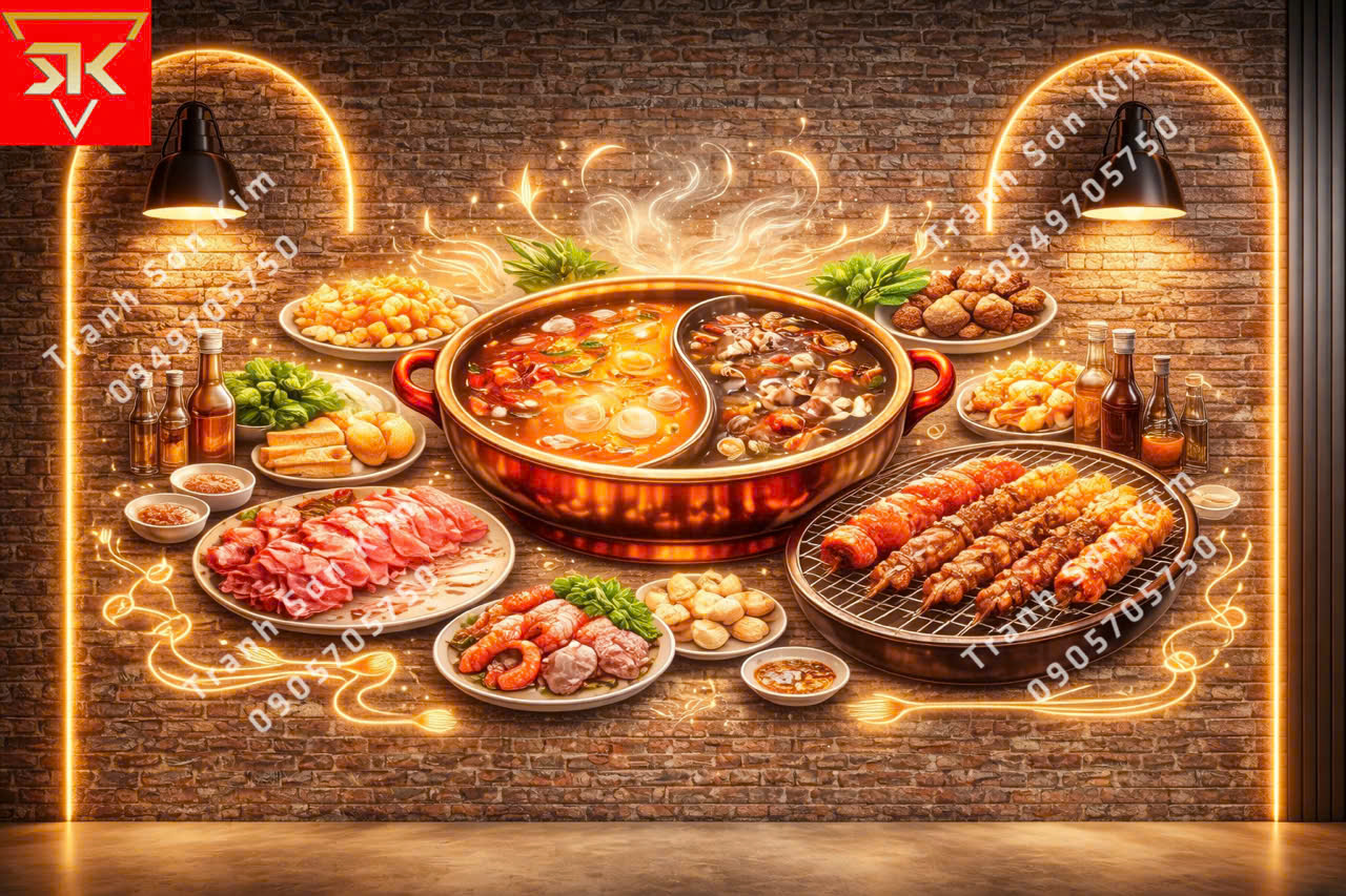 Tranh Dán Tường Quán Lẩu - Nướng Tạo Ấn Tượng Khó Phai