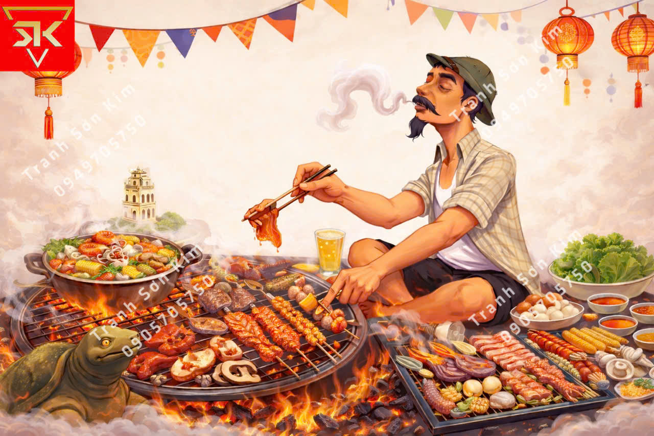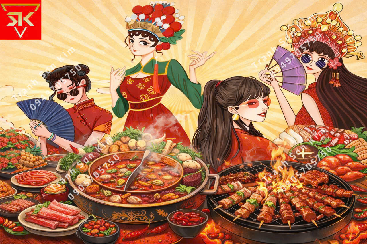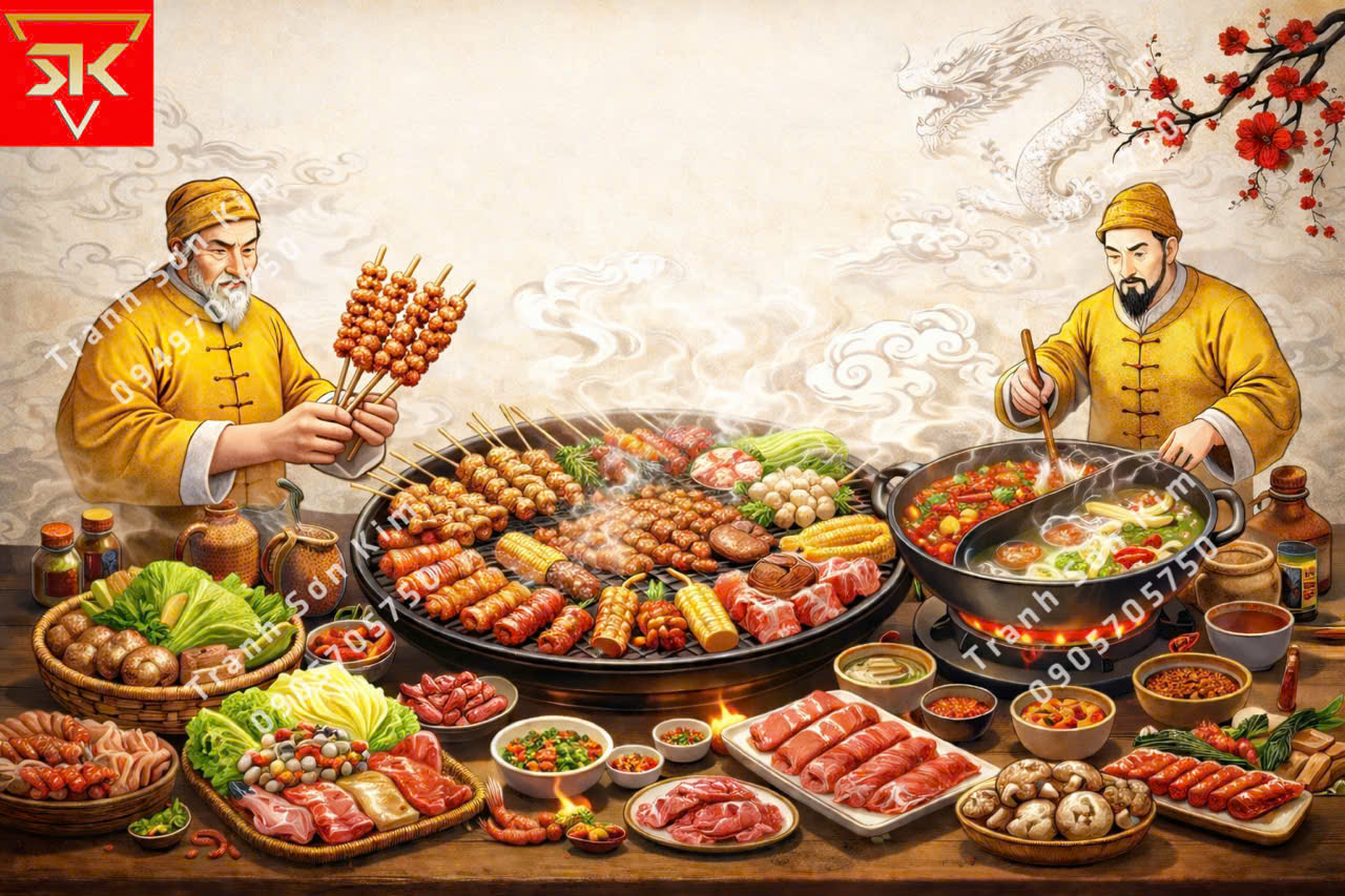 Tranh Dán Tường Quán Lẩu - Nướng Tạo Ấn Tượng Khó Phai