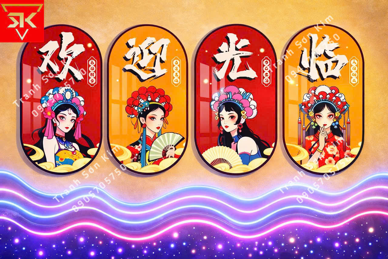 Tranh dán tường (AI) chân dung cô gái Trung Hoa nên chọn trang trí quán lẩu - nướng