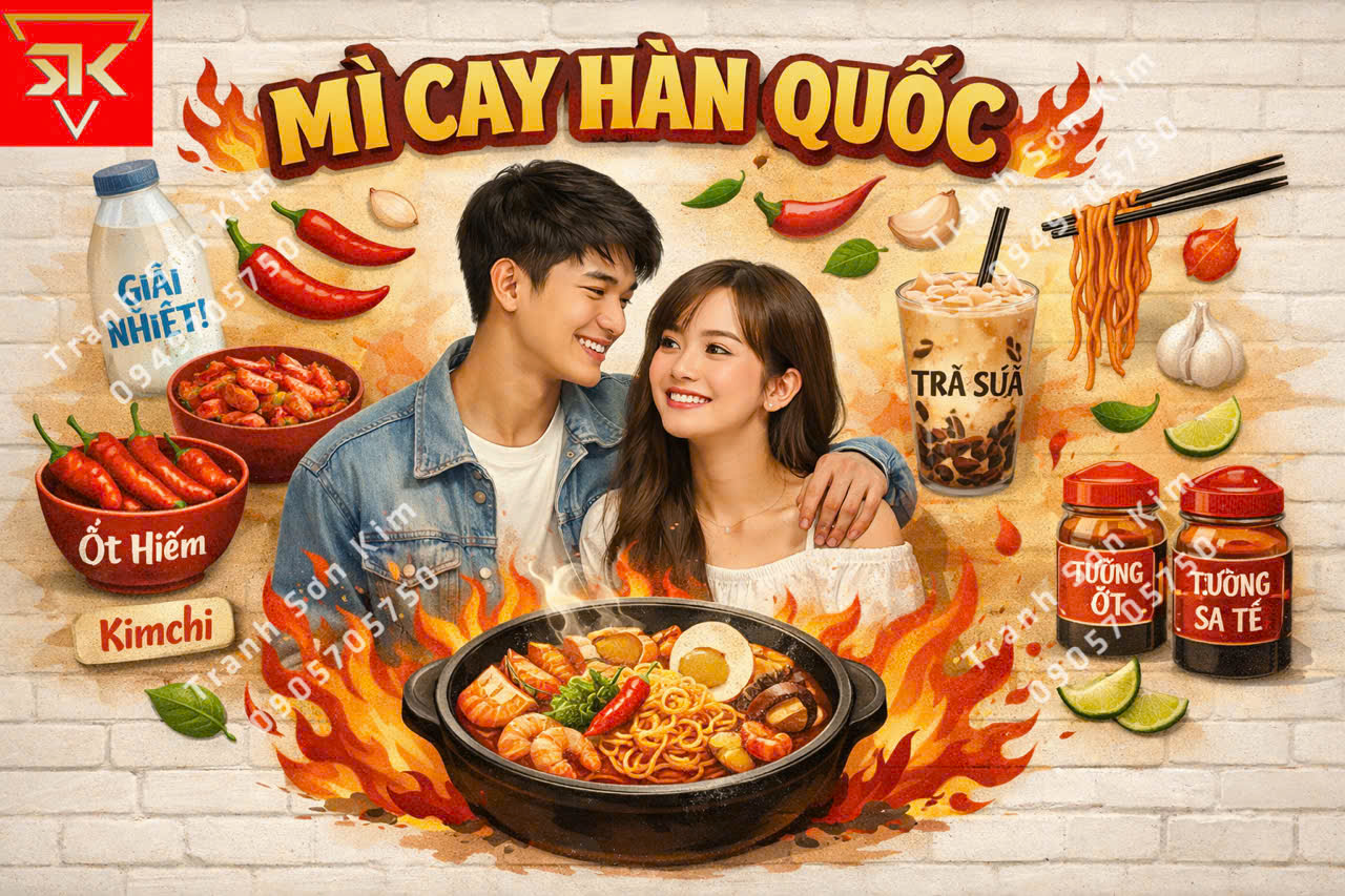 Tranh Dán Tường Quán Mì Cay Đẹp Ấn Tượng Nhất Tại Sơn Kim