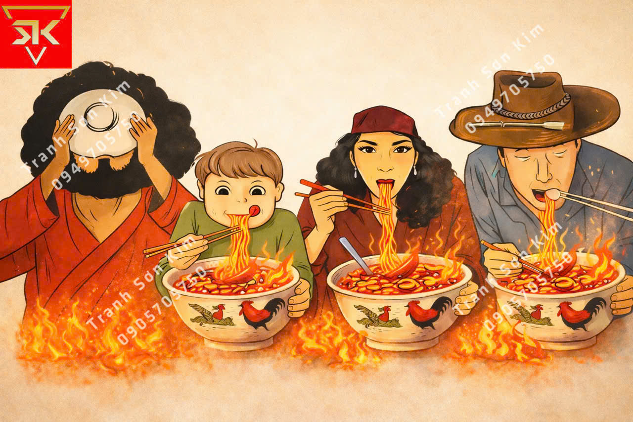 Tư Vấn Chọn Mẫu Tranh Dán Tường Quán Mì Cay Đẹp Ấn Tượng Nhất Tại Sơn Kim