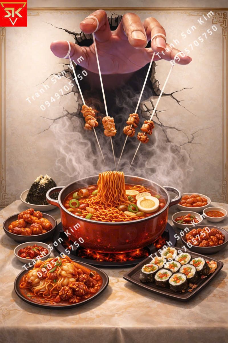Tham khảo những mẫu tranh dán tường 3D Hàn Quốc được thiết kế dành riêng cho quán ăn mì cay dưới đây của tranh dán tường Sơn Kim để cảm nhận được hết nét đẹp tuyệt vời về tranh 3D nơi đây nhé!