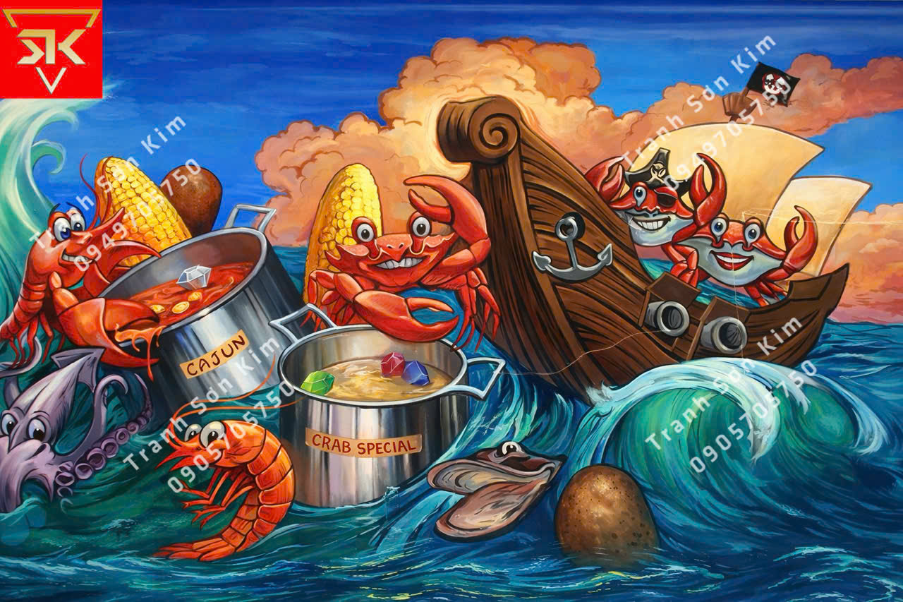 Sơn Kim đơn vị thi công tranh dán tường quán ốc, hải sản chuyên nghiệp