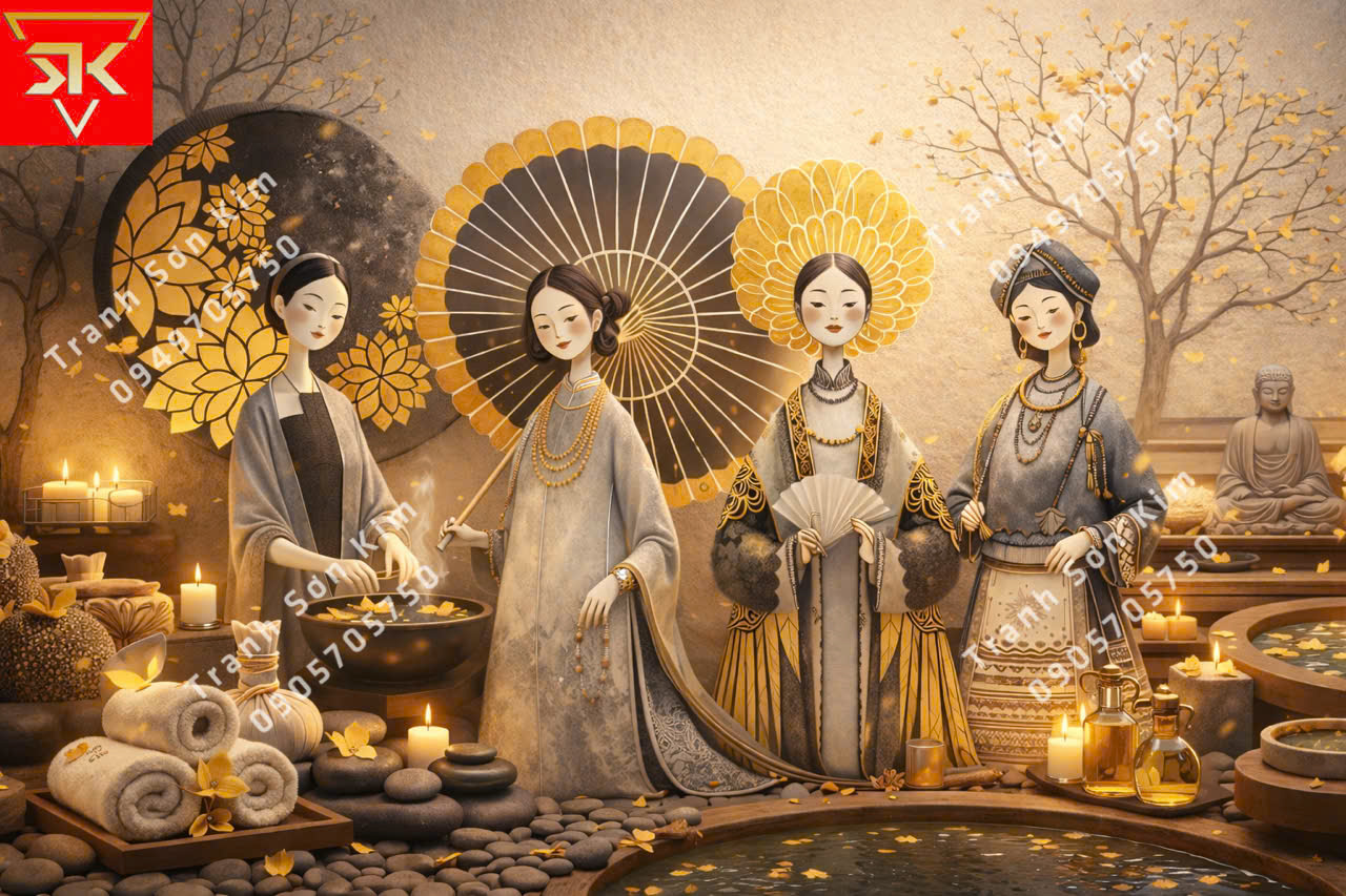 Bộ Mẫu Tranh Spa Phong Cách Indochine Nghệ Thuật Sơn Kim Vừa Ra Mắt