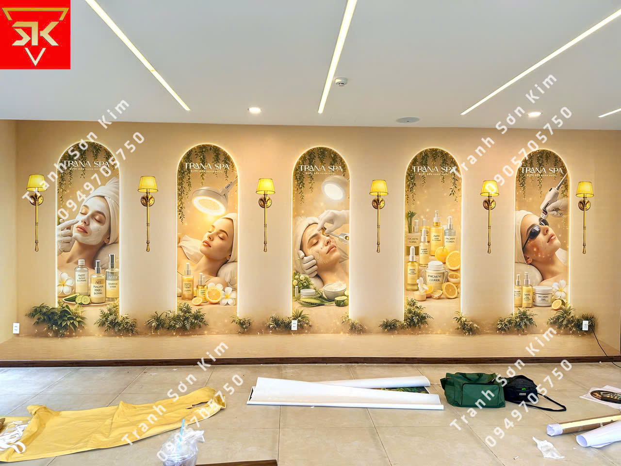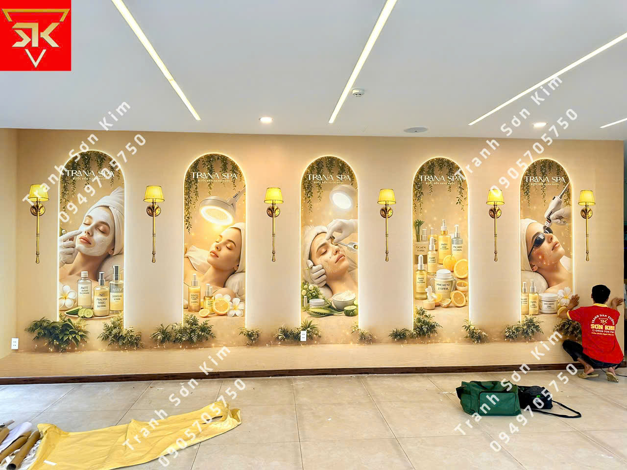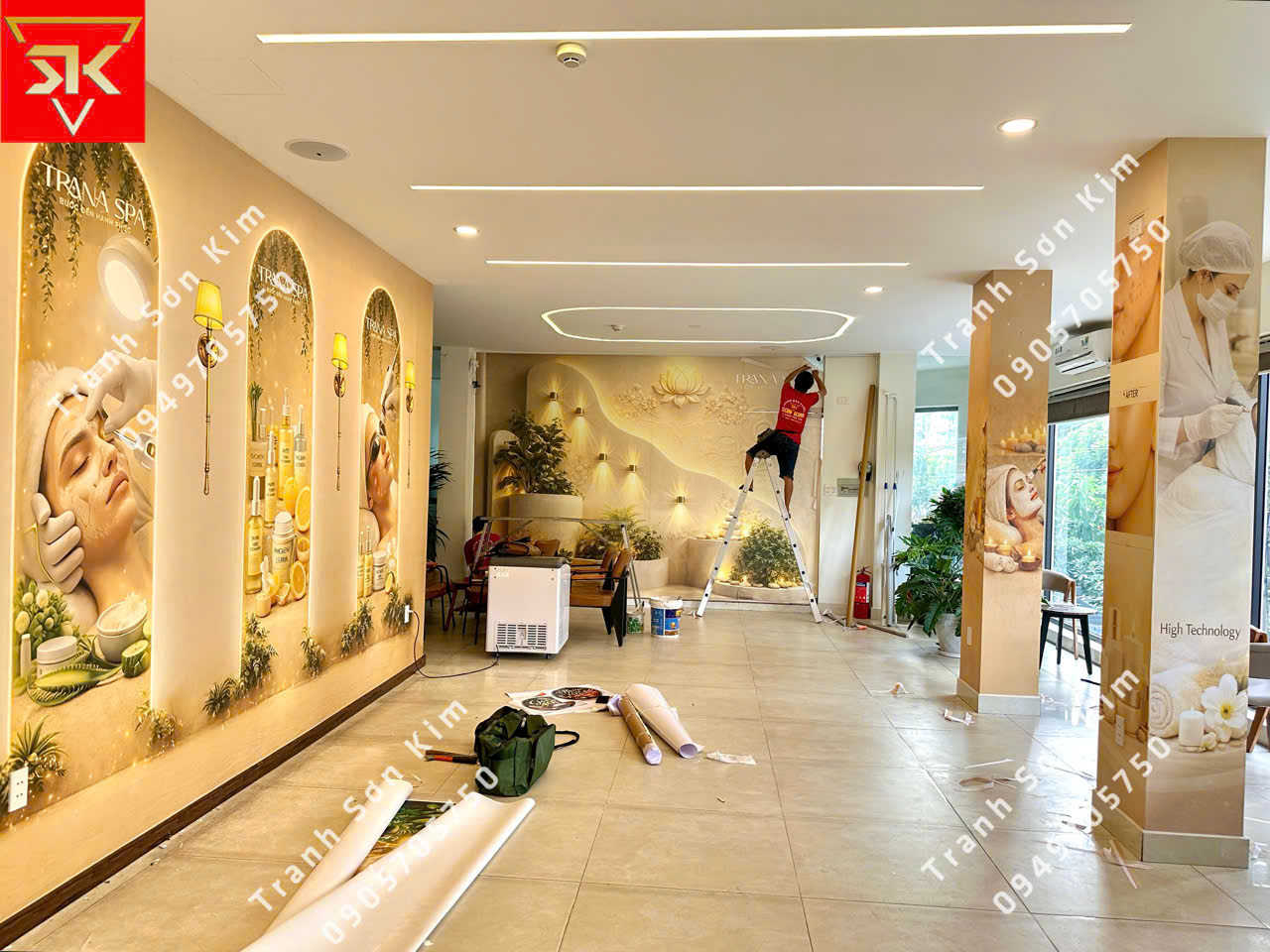 Thi công tranh dán tường spa chuyên trị mụn nám