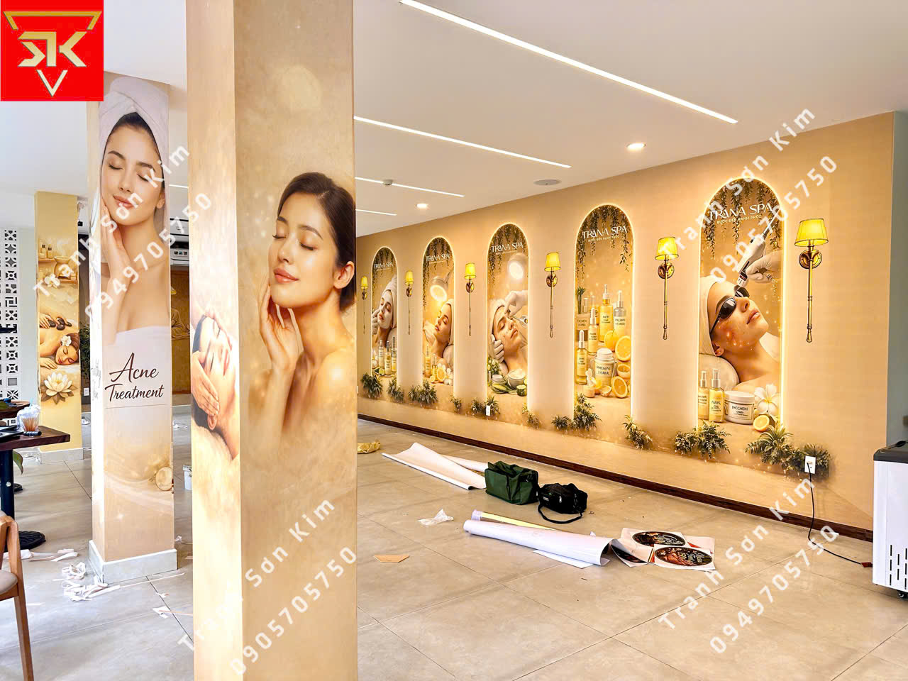 Thiết kế và thi công tranh dán tường spa chăm sóc da, trị mụn nám