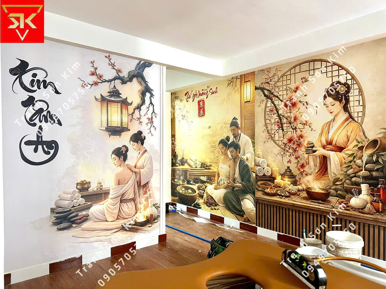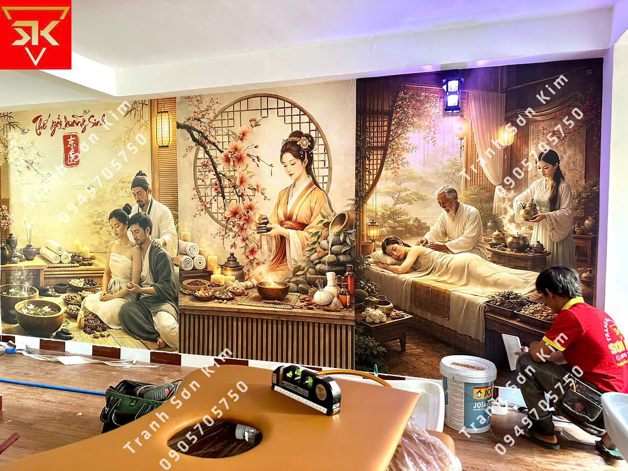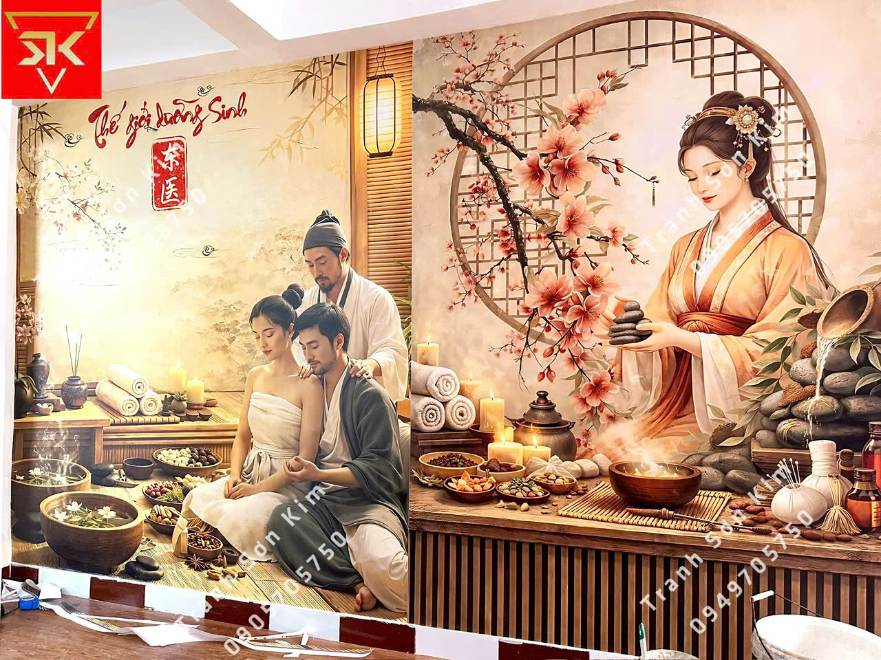 Thi công tranh 3D spa dưỡng sinh đông y trị liệu