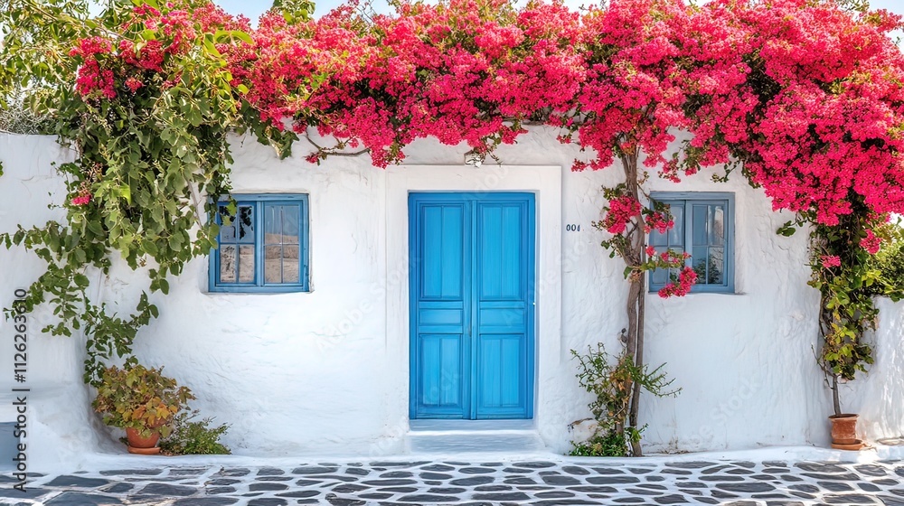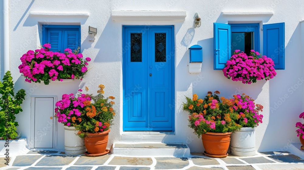 thi công tranh dán tường thành phố biển Hy Lạp cho phòng khách