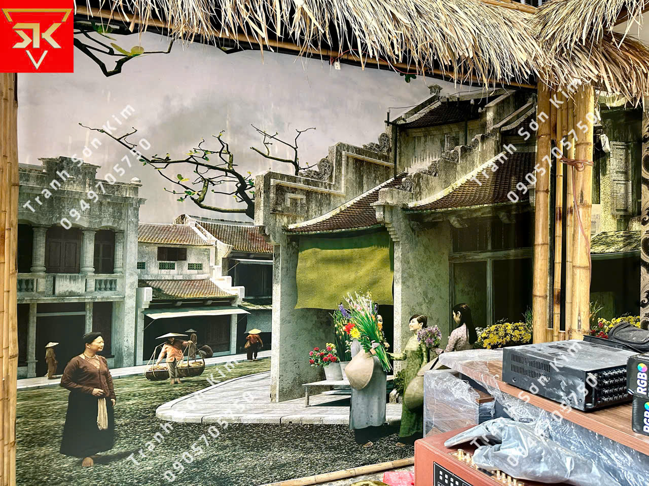 Chủ đề này được nhiều người lựa chọn trang trí nhà hàng, quán cà phê, phòng khách hay không gian hoài cổ, như một cách nhắc nhở về quá khứ, về cội nguồn. Tranh trắng đen không màu mè, nhưng chính sự mộc mạc ấy lại tạo nên chiều sâu cảm xúc, khiến người xem lắng lại, suy tư và gợi nhớ về một Việt Nam bình dị, yên ả, thấm đẫm tình người.