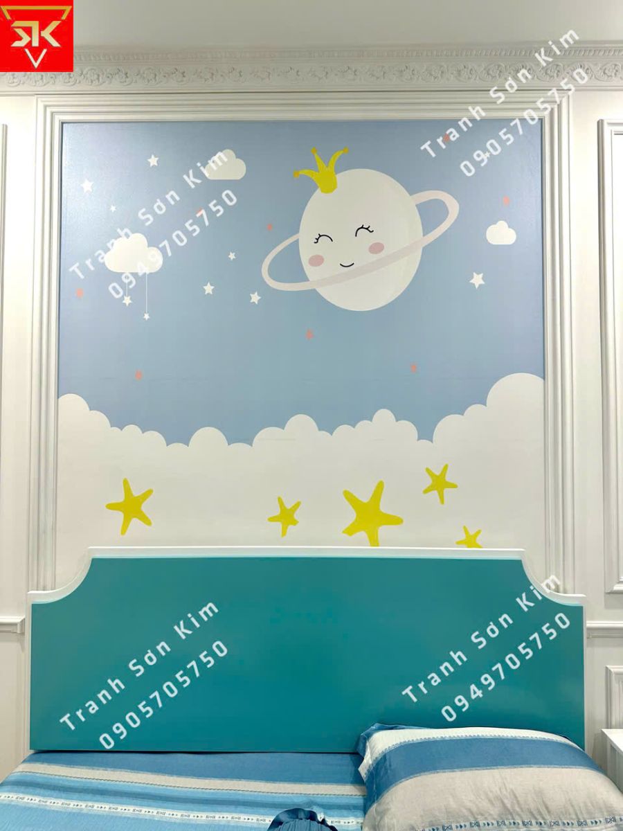Thi công tranh dán tường vũ trụ cho phòng bé trai