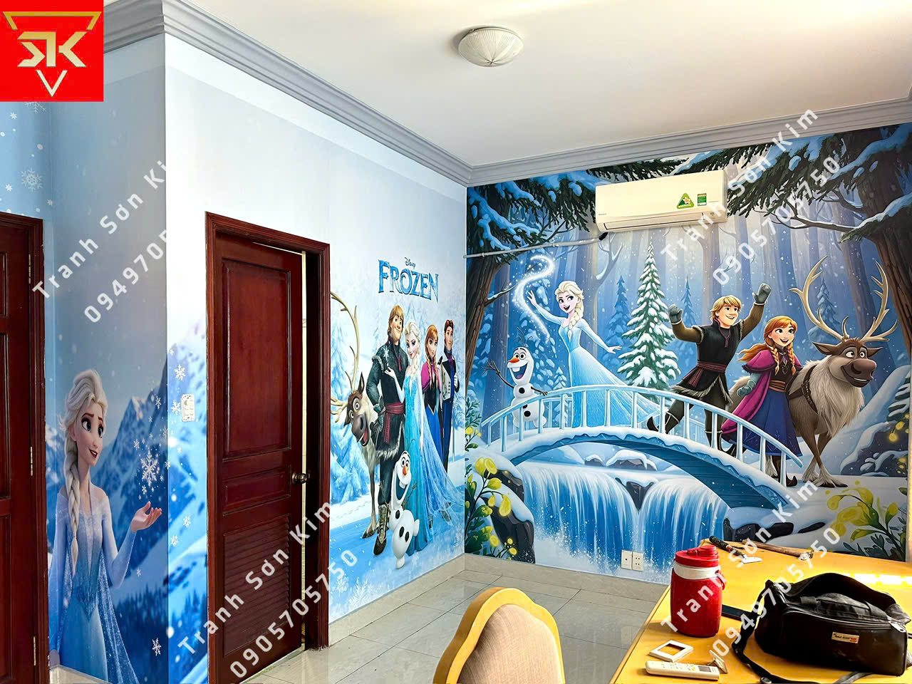 thi công tranh dán tường công chúa Elsa cho phòng ngủ bé gái