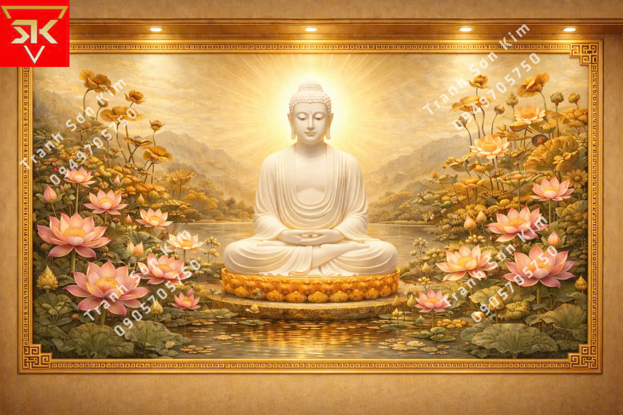 Tham khảo những mẫu tranh dán tường Phật Giáo dưới đây của Tranh dán tường Sơn Kim để cảm nhận được hết nét đẹp tuyệt vời về tranh 3D nơi đây nhé!