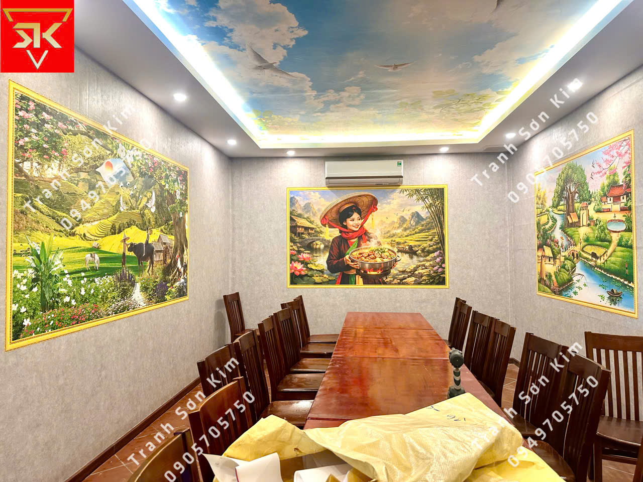 Công nghệ in kết hợp với chất lượng vải in cao cấp giúp những bức tranh dán trần, dán tường của Sơn Kim luôn thu hút mọi ánh nhìn, cuốn hút đến độ người ngắm không muốn rời bước khỏi không gian sống động của bức tranh để trở về thực tại.