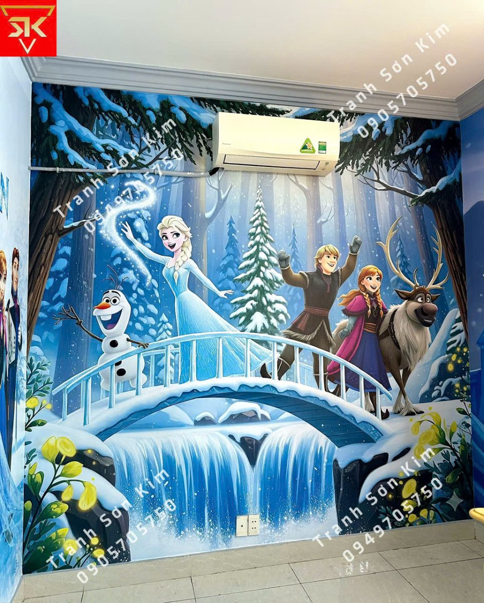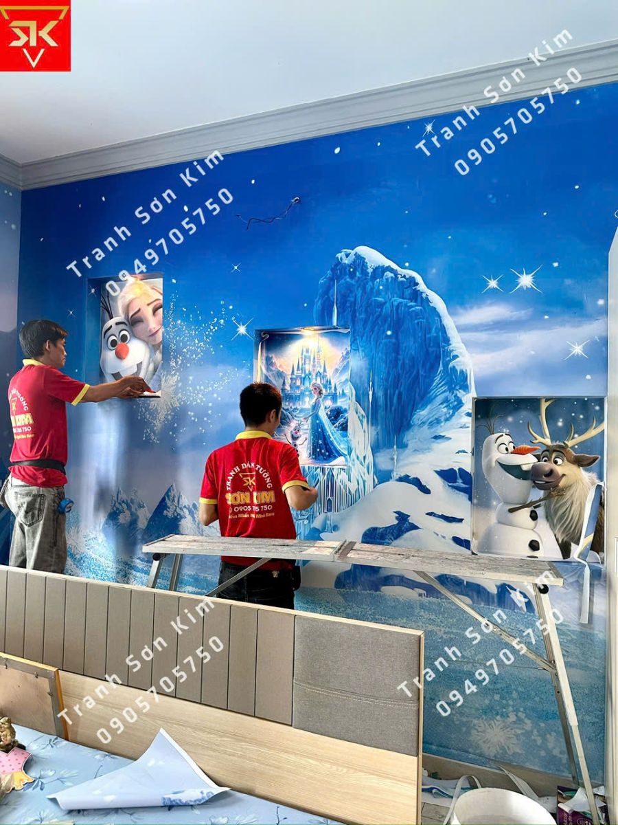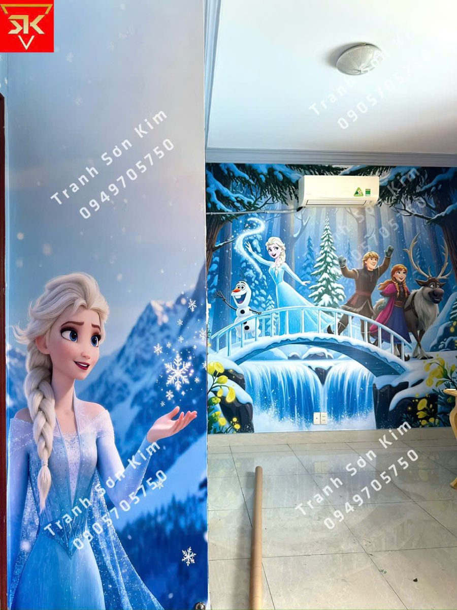 thi công tranh dán tường công chúa Elsa thời hiện đại
